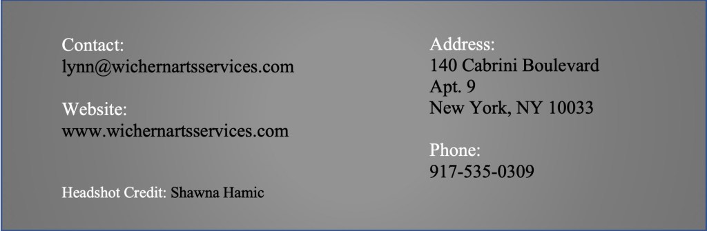 I have worked with Lynn Wichern in a number of ways for the past 6 years and have found her to be clear, direct, thorough and fun to work with. As a finance manager her work is thoughtful and precise, and her knowledge of systems and long term planning is impeccable. The archiving of the Cunningham Trust was nothing short of epic and I am sure that Lynn’s responsible and creative involvement played a great part in that project’s success. —Georgiana Pickett, Executive Director, Baryshnikov Arts Center